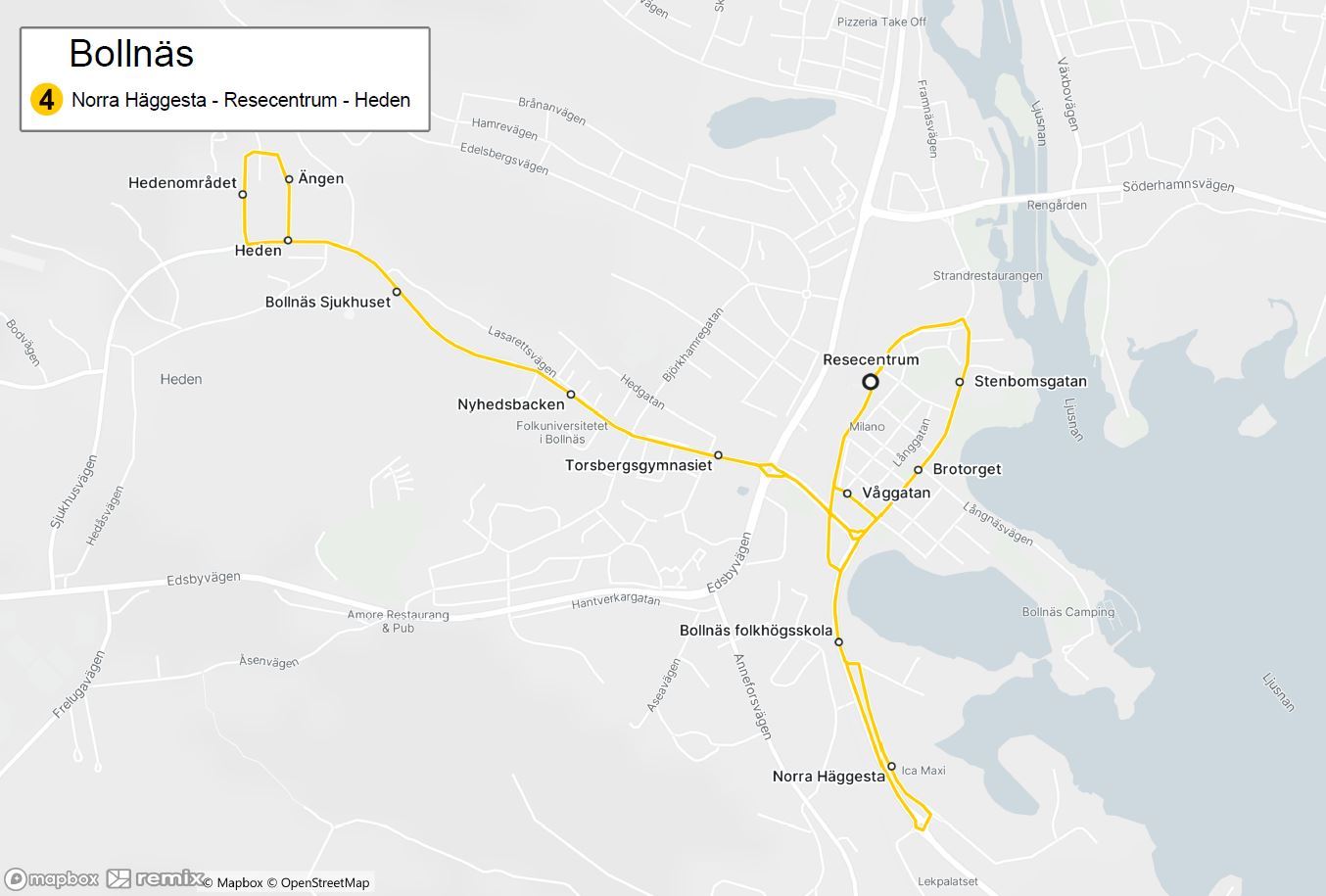 Linje 4 Norra Häggesta - Resecentrum - Sjukhuset - Heden